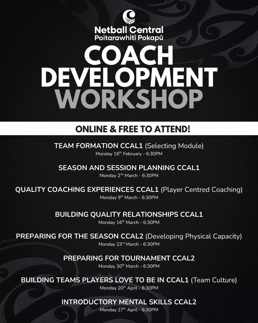 Team Formation – Selecting Module (CCAL1)Perfect for coaches with trials coming up, focusing on building strong, balanced teams and confident selection processes.This is the first of many workshops covering topics such as season and session planning, player-centred coaching, team culture, physical preparation, mental skills, and more. Register now: https://www.sporty.co.nz/viewform/499538